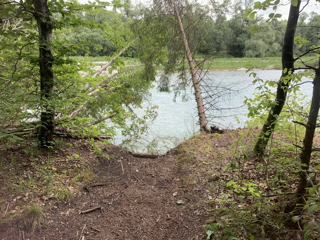 Ich bin jetzt unterwegs zwischen Wolfratshausen und Bad Tölz in den Wäldern entlang den Isar-Auen. Herrlich! Nachdem ich heute früh versucht habe, die Route etwas abzukürzen, bin ich auf einer befahrenen Straße gelandet – da sind die Wege durch die Wälder doch schöner.