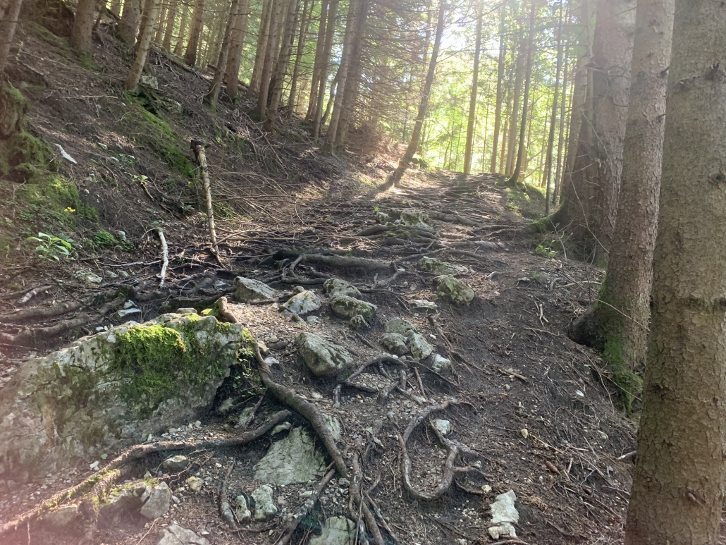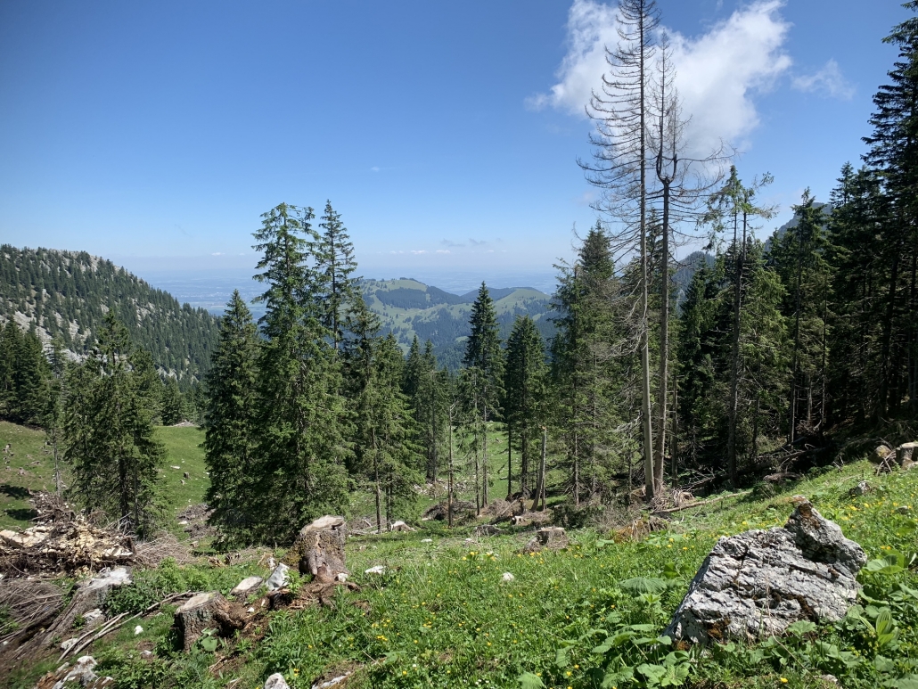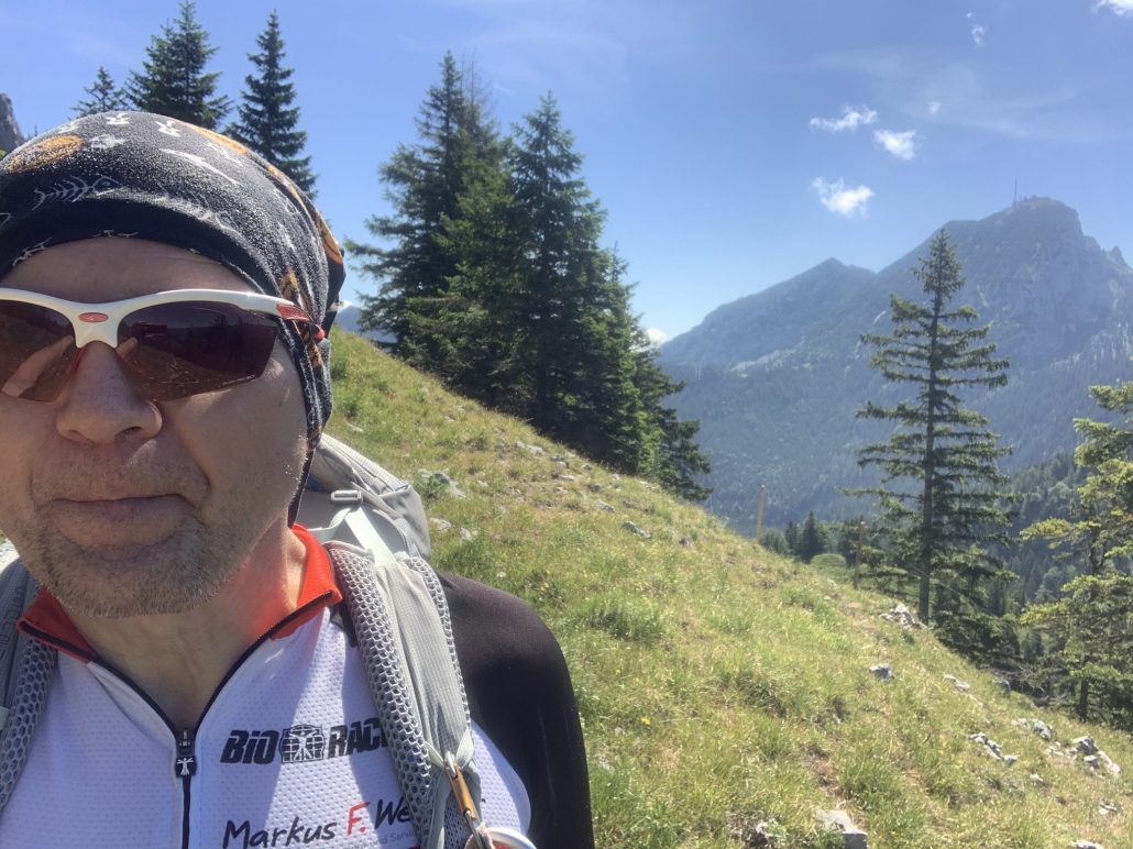 Ich habe drei wunderbare Menschen auf dem Weg getroffen und hier oben, wo so wenige sind, ist es so leicht miteinander in Kontakt zu kommen. Und dort, wo so viele sind – in der Stadt, in einem großen Unternehmen – ist es so schwer, in Kontakt zu kommen. Da sitzen die, die zusammen arbeiten auch in der Kantine oder im Mitarbeiterrestaurant zusammen anstatt sich mal zu Kollegen zu setzen und sich zu öffnen, mit anderen Kontakt aufzunehmen und zu fragen: Wer bist Du denn? Wo kommst Du denn her? Und was machst Du hier im Unternehmen? Was ist Dein Job? Kann ich vielleicht etwas dafür tun, dass Deine Arbeit leichter wird? Mit diesen Gedanken gehe ich weiter auf dem original geplanten Weg Richtung Wendelstein.