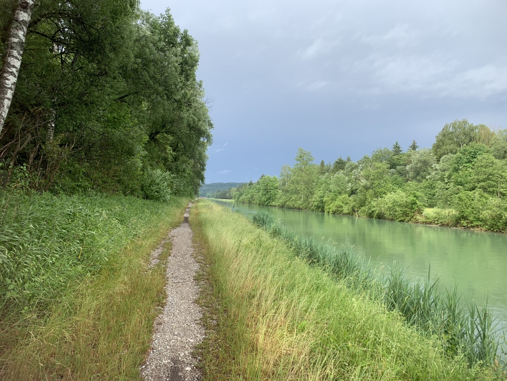 Der letzte Blick zurück auf München für 54 Tage. München – Venedig – München, der erste Schritt ist heute getan: ich habe es von München nach Wolfratshausen geschafft. Wir wissen nicht, was vor uns liegt – ich weiß nur, es geht nach Süden, 1.300 km, und freue mich auf das, was kommt. Noch wenige Kilometer Stadt und dann wird es ruhig.