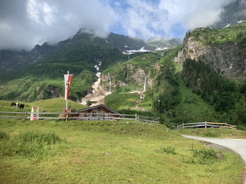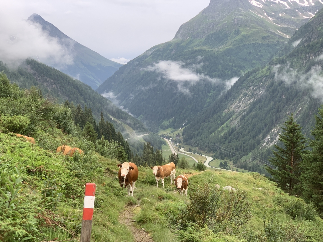 Gestern war vom Gefühl her wieder Tag 4, ich habe 11 Stunden geschlafen im richtigen Bett, hab viel Gymnastik gemacht. Nach dem heutigen Frühstück kommt Aufstieg in die Höhen, der Alpenhauptkamm: ich werde jetzt 2 Tage ganz weit oben sein. Darauf freue ich mich sehr mit gleichzeitigem Muffensausen, weil es sehr fordernd wird und von 1.300 auf knapp 3000 Meter über NN geht. Auf der St. Pölten Hütte bin ich heute am vorläufig höchsten Punkt der Tour gewesen: auf 2.481 m. Nach 5 Stunden Aufstieg kam ich dort gerade rechtzeitig vor einem heftigen Unwetter an. Inzwischen hat es wieder aufgeklart und ich konnte wieder ins Tal absteigen. Allerdings bin ich nun einen 2/3 Tag hinter meiner Planung, das heißt, ich muss heute im Maternei Tauernhaus auf 1.512 m übernachten und bis Lienz neu planen. In solchen unberechenbaren Situationen erfordert das Leben eben eine gewisse Flexibilität. Und das Wetter in den Bergen wird seinem Ruf gerecht, unberechenbar zu sein.