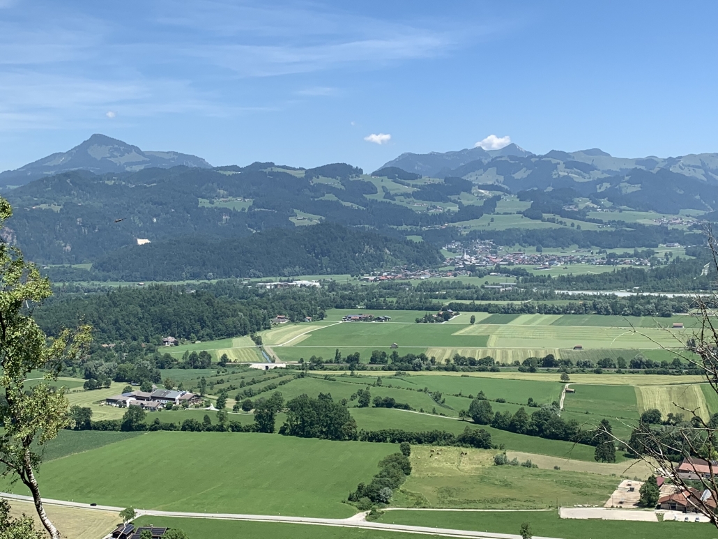 Der 6. Tag von Flintsbach nach Kufstein steht nach den Strapazen der ersten Woche unter der Entscheidung, meine Ressourcen etwas zu schonen. Die heutige Etappe war mit 20 km verhältnismäßig kurz und führte mich an zwei Badeseen vorbei, die ich bewusst für Pausen genutzt habe. Umso bedeutsamer ist das Tagesmotto! In den ersten 5 Tagen habe ich die Begrenztheit meiner körperlichen Ressourcen und Möglichkeiten deutlich vor Augen geführt bekommen… Ursprünglich geplant war diese Route über das Berchtesgadener Land (das ist emotional der Tatsache geschuldet, dass ich dort fast 3 Jahre gelebt und gearbeitet habe).